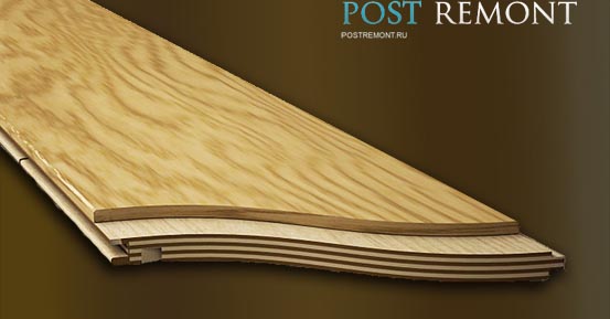 Инженерная доска по своей структуре неоднородна и включает в себя 2-3 слоя. Роль основания играет влагоустойчивая фанера толщиной до четырнадцати миллиметров. Характеристики основы делегируют свои качества уже конечному изделию — оно способно выдерживать большие нагрузки и при этом не деформироваться.